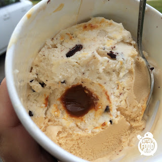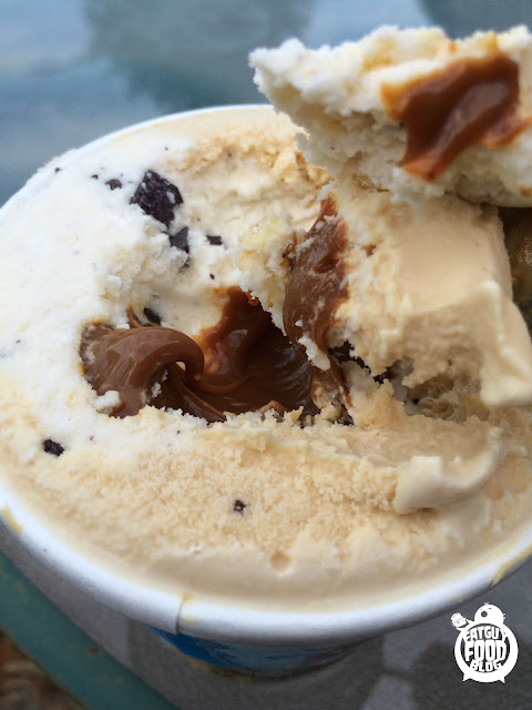 Caramel and Sweet Cream Coconut ice cream with fudge flakes and a caramel core. As soon as the plastic top holder thing started krinkling, I got a friend who was suddenly interested in what was in my hands.