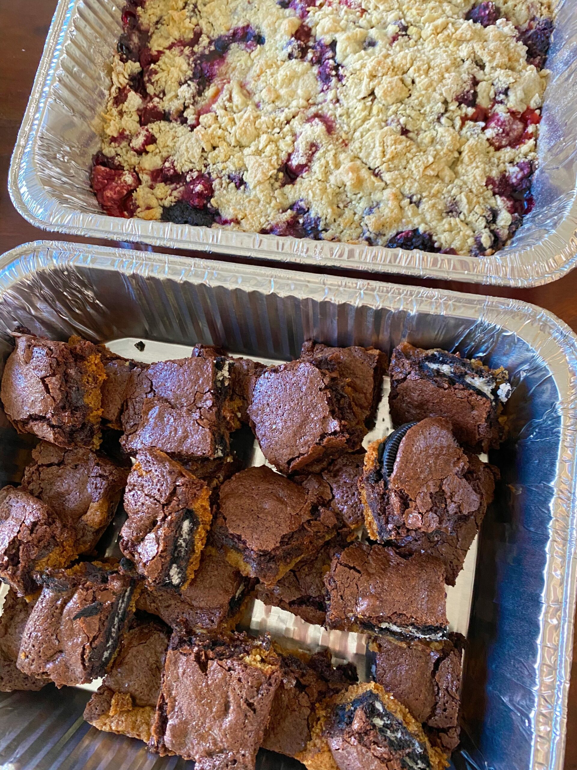 Brownie-cookie-Oreo bars, and this combined berry crumble (I used gf flour).